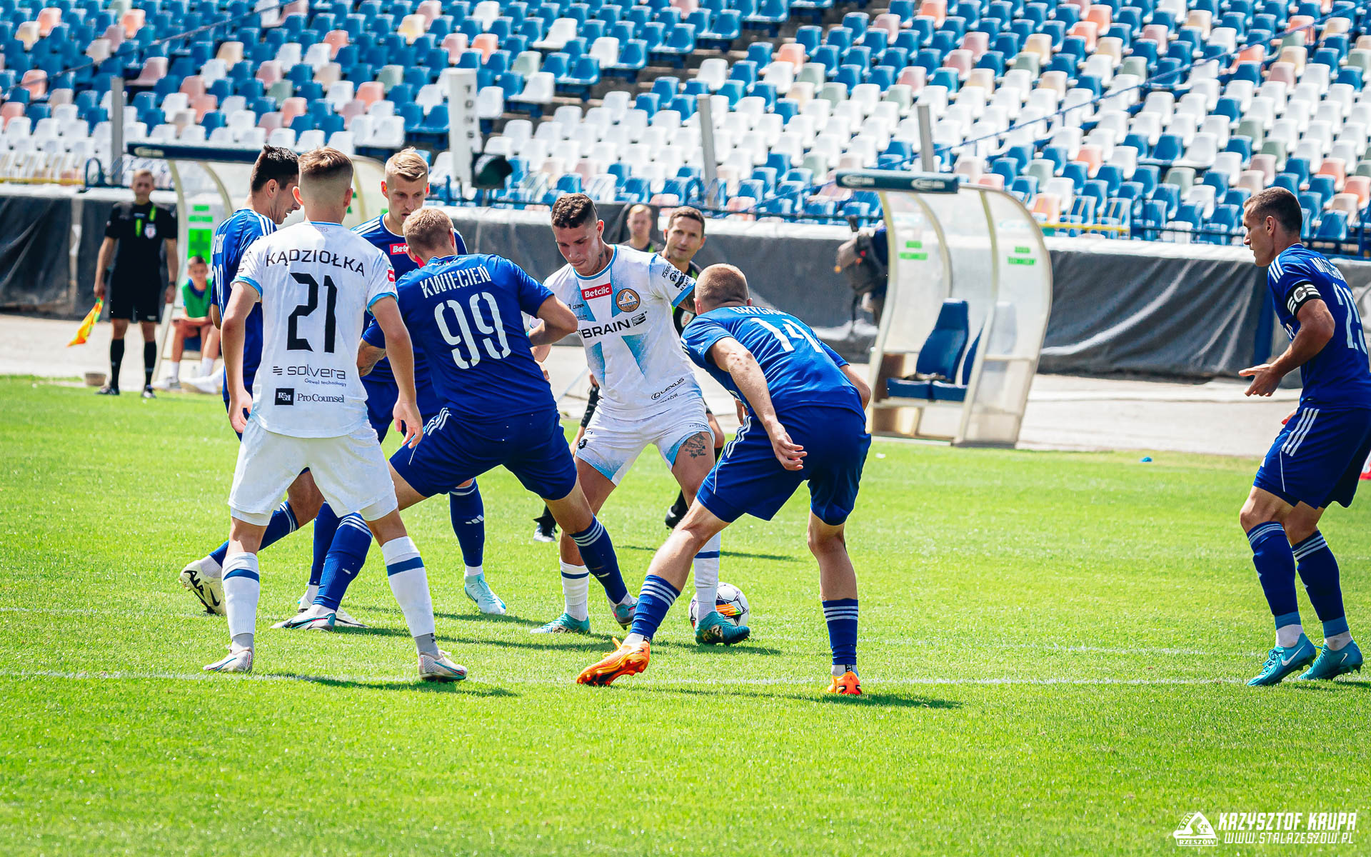 Druga galeria zdjęć z meczu 3. kolejki Betclic 1 Ligi pomiędzy Stalą Rzeszów a Miedzią Legnica, autorstwa Krzysztofa Krupy.
