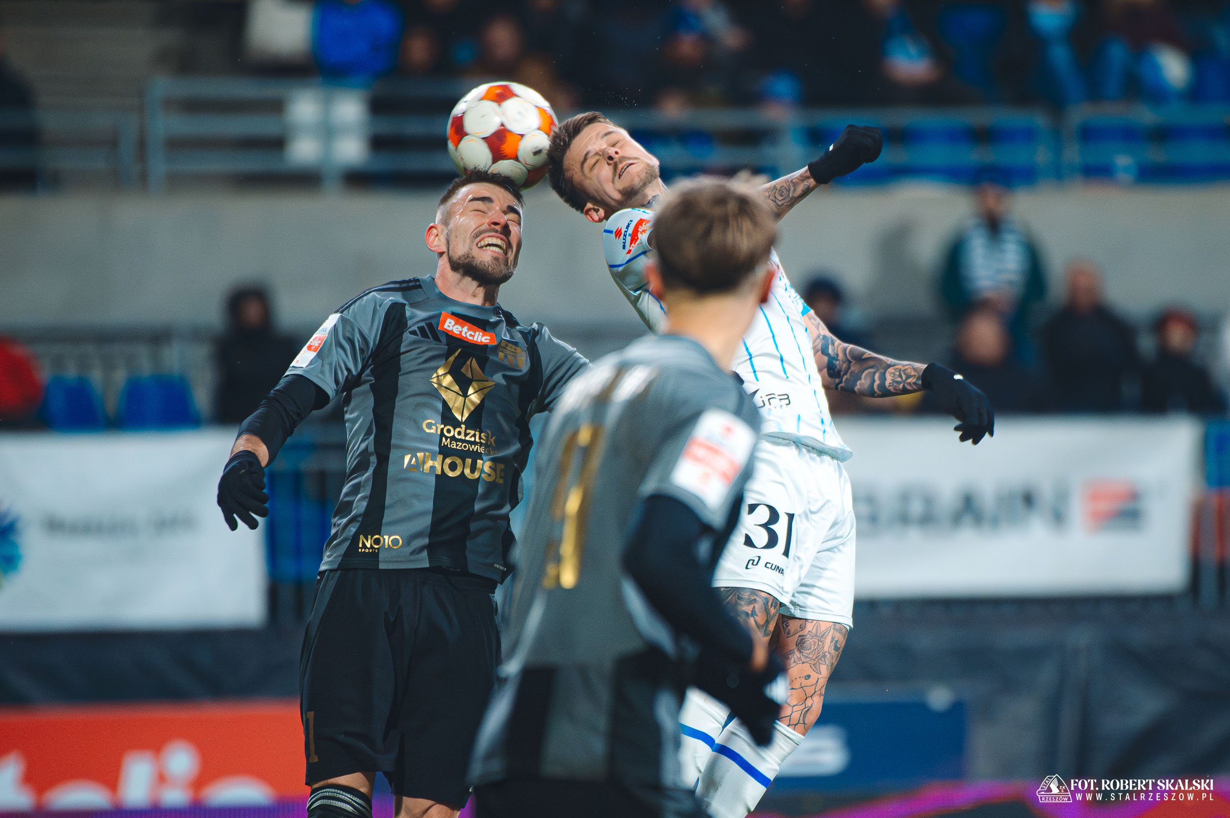 Zdjęcia Roberta Skalskiego z meczu 18. kolejki Betclic 1. Ligi 2025/26 pomiędzy Stalą Rzeszów a Pogonią Grodzisk Mazowiecki.