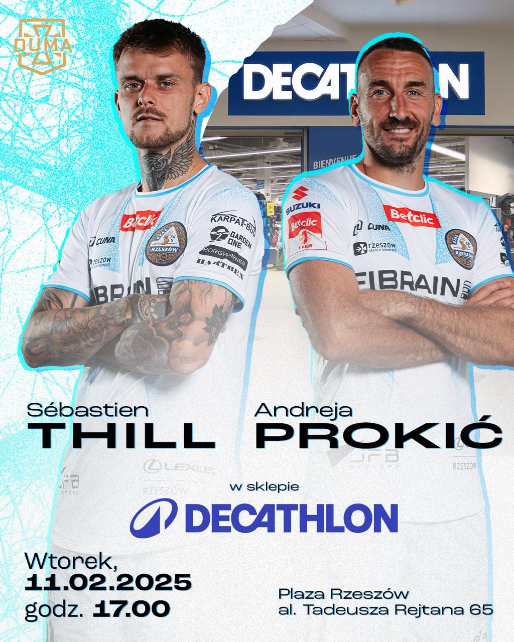 Już we wtorek 11 lutego w Sklepie Decathlon Rzeszów mieszczącym się w Galerii Plaza Rzeszów (al. Tadeusza Rejtana 65) będziecie mogli spotkać piłkarzy biało-niebieskich Sebastiena Thilla i Andreję Prokicia! Początek o 17:00.